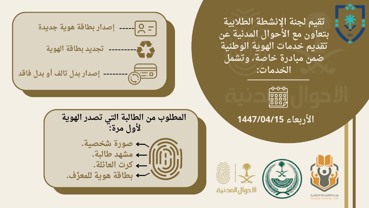 اقامت الأحوال المدنية برنامج في كلية الهندسة للتريف الطالبات بالخدمات والتوعية باهميةالمحافظة علي الهوية الوطنية.