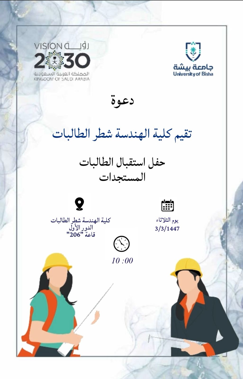 سعدنا بتنظيم فعالية استقبال لطالباتنا المستجدات في كلية الهندسة.